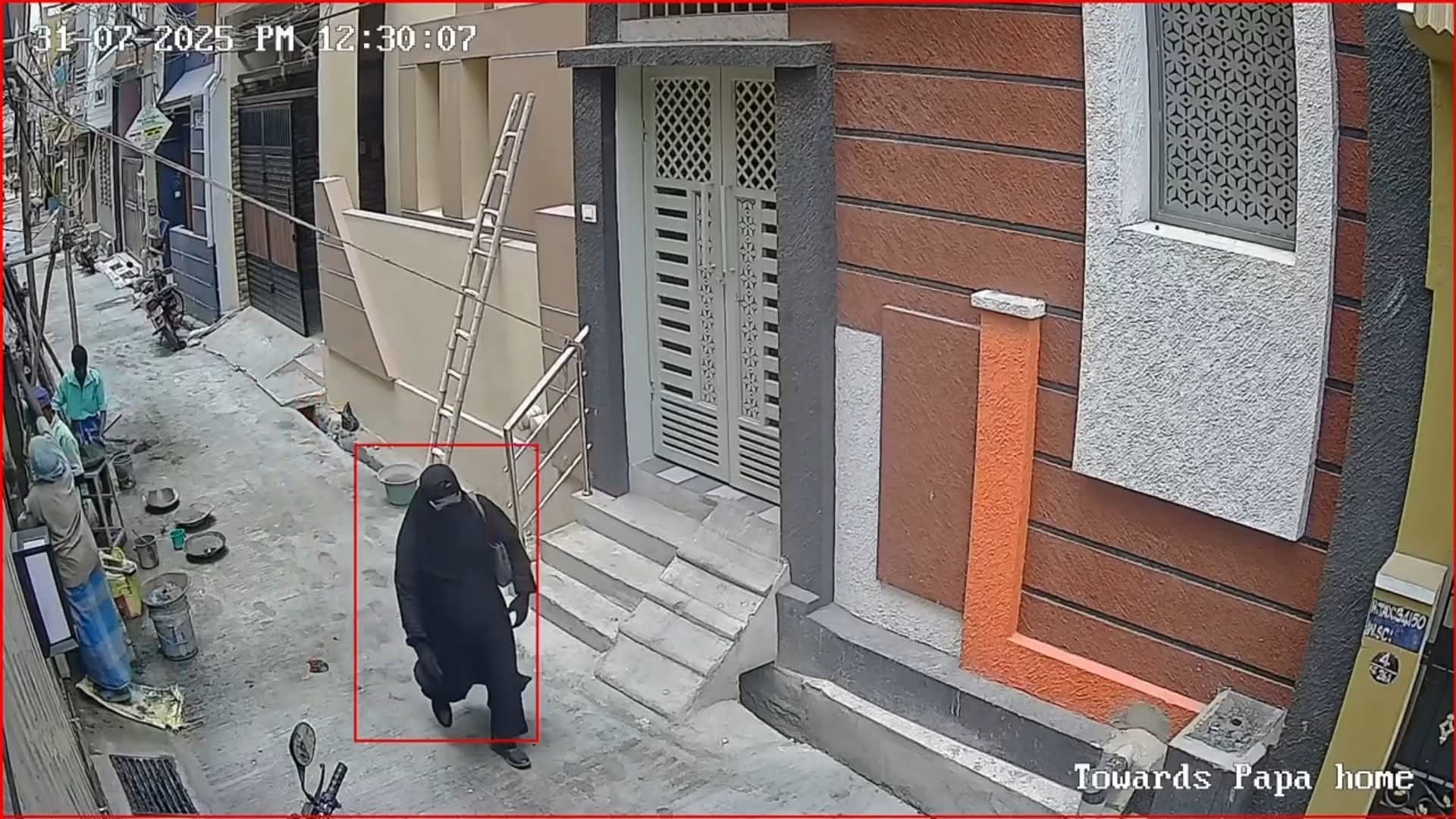 இதனை நம்பி வீட்டில் இருந்த முபாரக் பாஷாவின் மனைவி சுல்தானா கதவைத் திறந்துள்ளார். அப்போது பர்தா அணிந்து வந்த மர்ம நபர் சுல்தானாவை கத்தியை காட்டியுள்ளார். இதில் பயந்து போன சுல்தானா மற்றும் அவரது மகள் வீட்டில் இருந்த ஒரு அறைக்கு சென்று கதவை தாழ்ப்பாள் போடுக்கொண்டனர்.