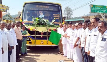 சேந்தமங்கலம் எம்எல்ஏ பொன்னுசாமி நிகழ்ச்சிக்கு முன்னிலை வகித்தார். நாமக்கல் லோக்சபா தொகுதி கொமதேக எம்.பி. மாதேஸ்வரன் நிகழ்ச்சியில் கலந்துகொண்டு, புதிய வழித்தடத்தில் பஸ் வசதியை துவக்கி வைத்தார்.
