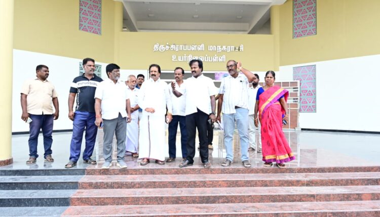 திருச்சியில் புதிதாக கட்டப்பட்டு வரும் மாதிரி மாநகராட்சி பள்ளியில் மேயர் அன்பழகன் இன்று ஆய்வு. முன்னேற்பாடு பணிகள் குறித்து கேட்டறிந்தார்.
