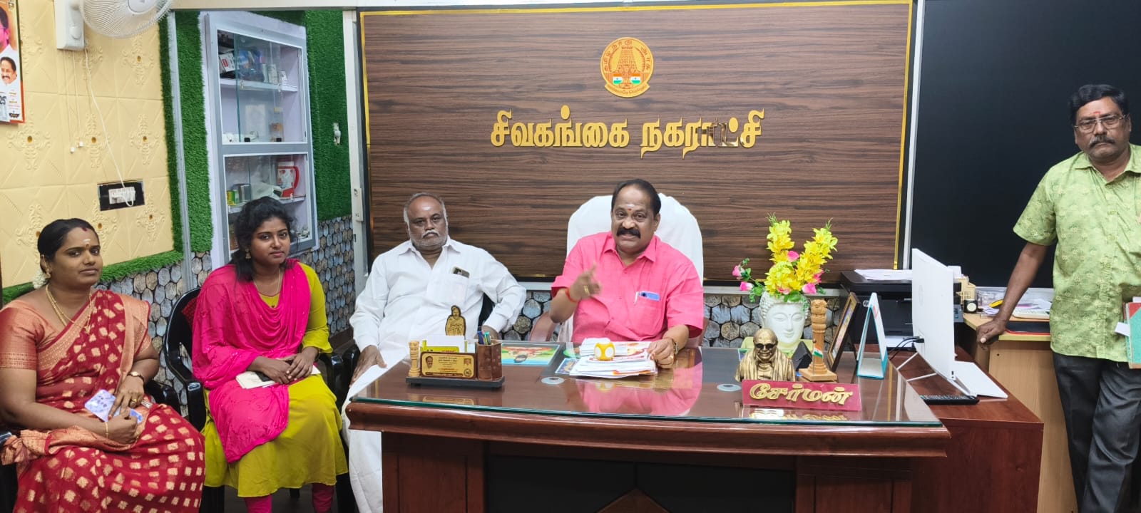 உள்ளாட்சித்துறை அமைச்சரிடம் மக்கள் பணிக்காக 100 கோடி நிதி கேட்டு சிவகங்கை சேர்மன் மற்றும் கவுன்சிலர்கள் கோரிக்கை.