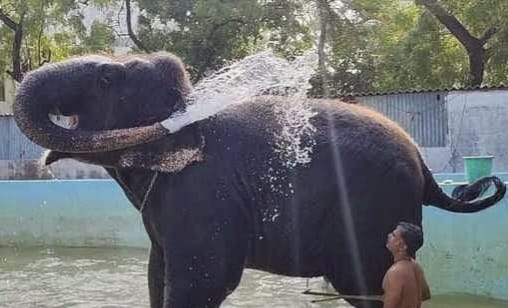 கோடை வெப்பத்தை தணிக்கும் விதமாக திருச்செந்தூர் சுப்பிரமணிய சுவாமி கோயில் யானை தெய்வானை, அங்குள்ள நீச்சல் குளத்தில் உற்சாகமாக நீராடியது.